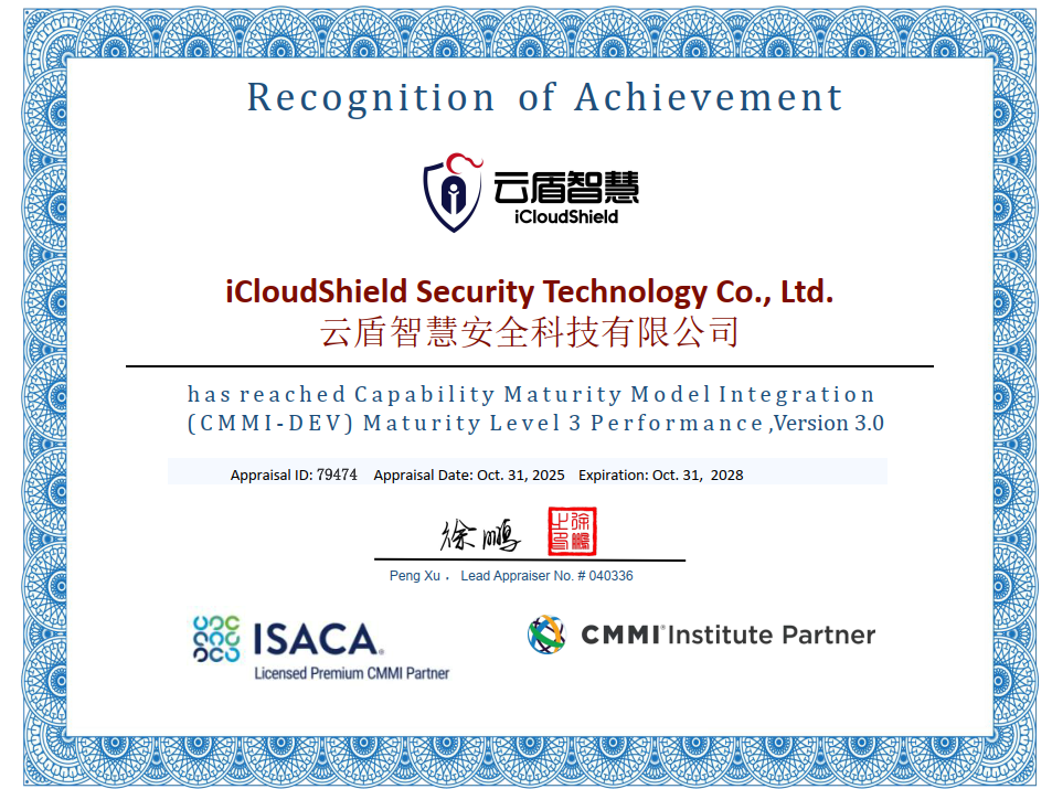 近日,云盾智慧正式通过国际权威认证CMMI(能力成熟度模型集成)三级认证!这标志着云盾智慧在项目管理、流程规范、软件/服务交付能力等关键领域达到了国际认可标准,也表明云盾智慧具备为客户提供优质产品和服务及解决方案的综合能力。