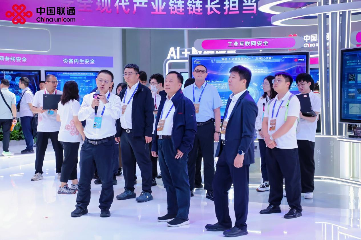 云盾智慧董事长李明铎、副总经理毛永生、营销支撑部/产品创新部总监沈璐参观联通展台